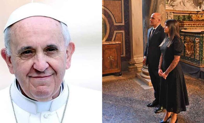 На приемот кај папата Франциск носеше црн фустан исто така до македонски дизајнер. Имено, таа за оваа пригода носеше елегантна креација од кашмир од Папаз, збогатена со рачно извезена памучна тантела.