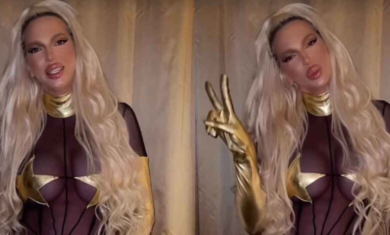 Карлеуша сличен ефект предизвикува и кога е на сцената, а тоа го демонстрираше и неодамна со екстравагантниот костим.
