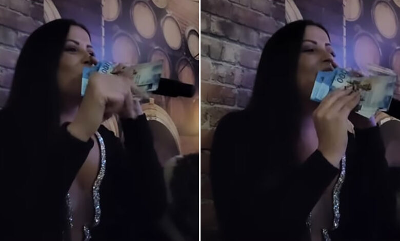 На социјалните мрежи редовно се појавуваат видеа на кои јасно се гледа како пејачите добиваат бакшиш, но навистина ретко можеме да видиме кога тие буквално се затрупани со пари што одвај можат да ги задржат во рацете. На новото видео со згодната струмичанка, таа за помалку од 15 секунди добива минимум илјада евра, ако не и повеќе.
