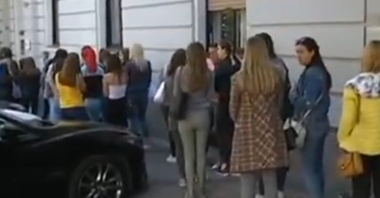 Доказ за тоа е видеото снимено од српски РТС, во кое повеќе од триста луѓе чекаат во редот на улицата Френкуска во Белград да купат дизајнерски фустани по намалени цени.