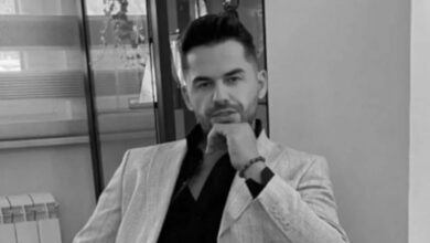 Шерон позираше во дневната соба од својата вила во Беверли Хилс, а на лицето носеше црни реј-бан очила за сонце.