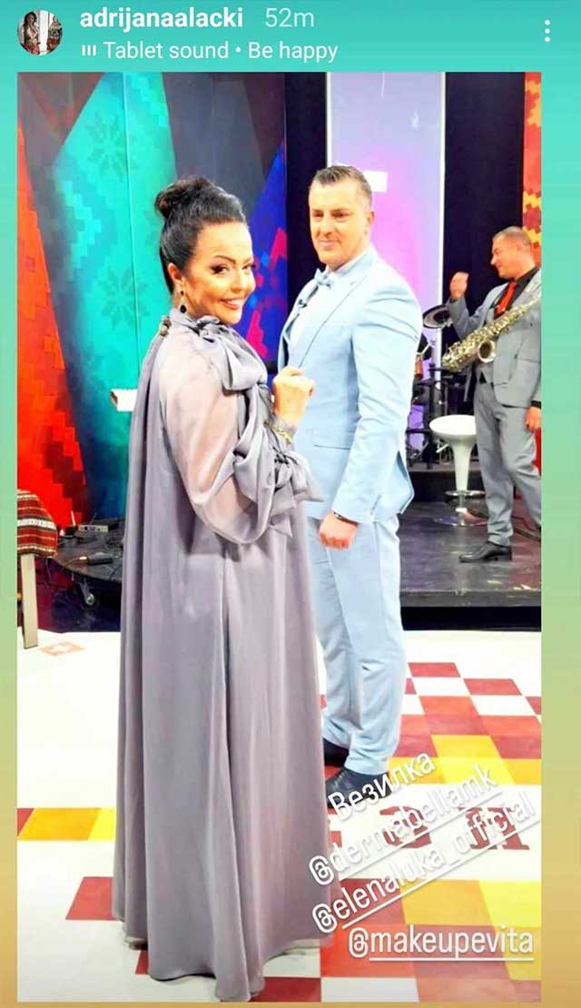 Покрај неа блескаше и нејзиниот колега Спасен Сиљаноски, кој пак носеше костум во светло сина нијанса која одлично се вклопи со изданието на неговата колешка, така што и двајцата оставија одличен впечаток пред гледачите.