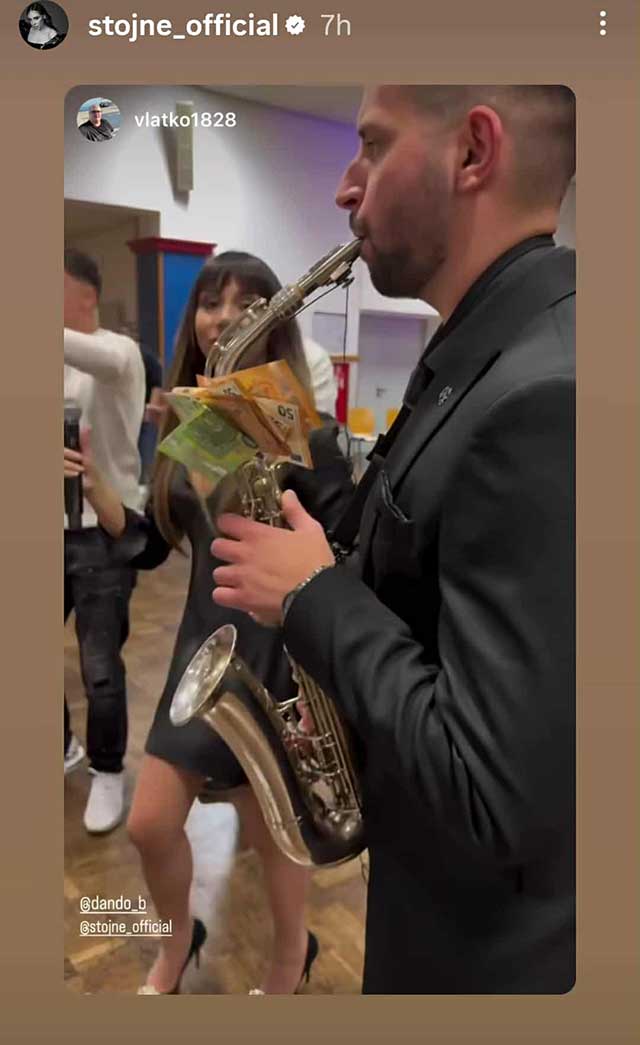 Од снимките што се појавија на социјалните мрежи може да се види дека рацете и се полни со пари, како и инструментите на музичарите. Расположените гости не штедеа и погодени од добрата песна убаво ги наградија со бакшиш, така што евра летаат од сите страни.