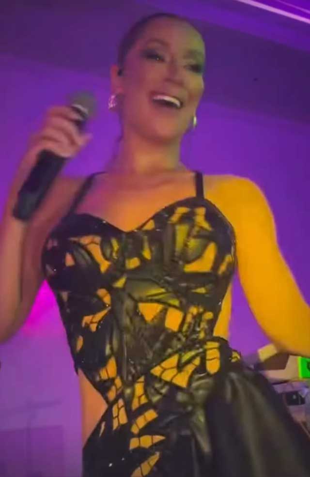 Станува збор за фустан со мошне првокативен крој, но кој пејачката го носеше мошне самоуверено и во него танцуваше.
