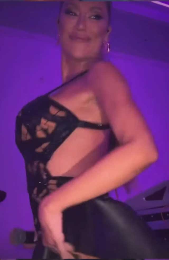Таа пред публиката се појави во кожна креација која повеќе откриваше отколку што сокриваше, истакнувајќи го телото во преден план.