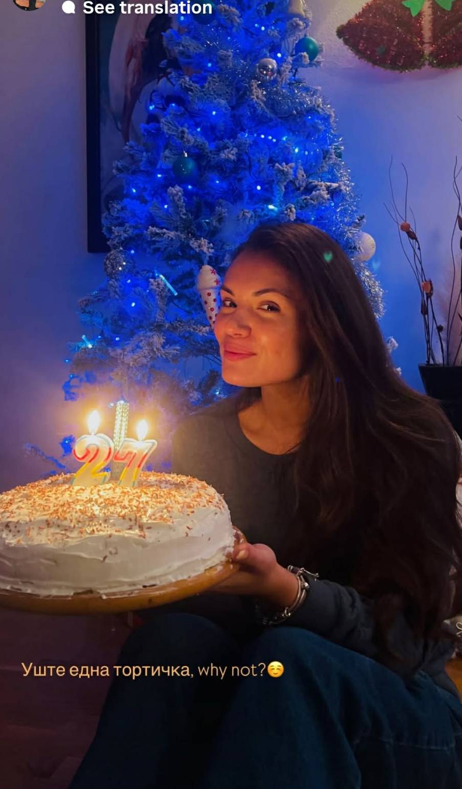 Следните фотографии што Моника ги сподели се од нејзиниот дом, со новогодишната елка во позадината.