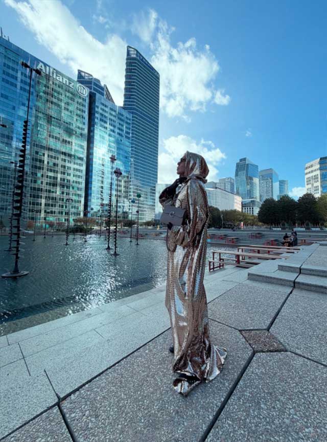 Имено, Боки во Градот на светлината се појави во необичен металик мантил во кој блескаше од глава до пети и изгледаше како да е излезен од некој научно фантастичен роман или филм.