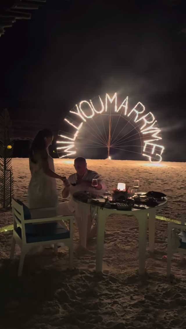 Имено, тој својата сакана Андреа Ангелевска ја запроси филмски, на плажа, со огномет и голем натпис „Ќе се омажиш ли за мене?“.