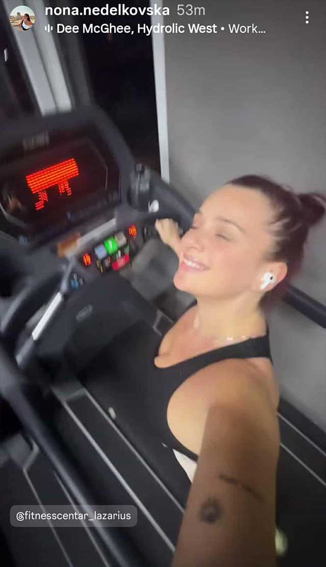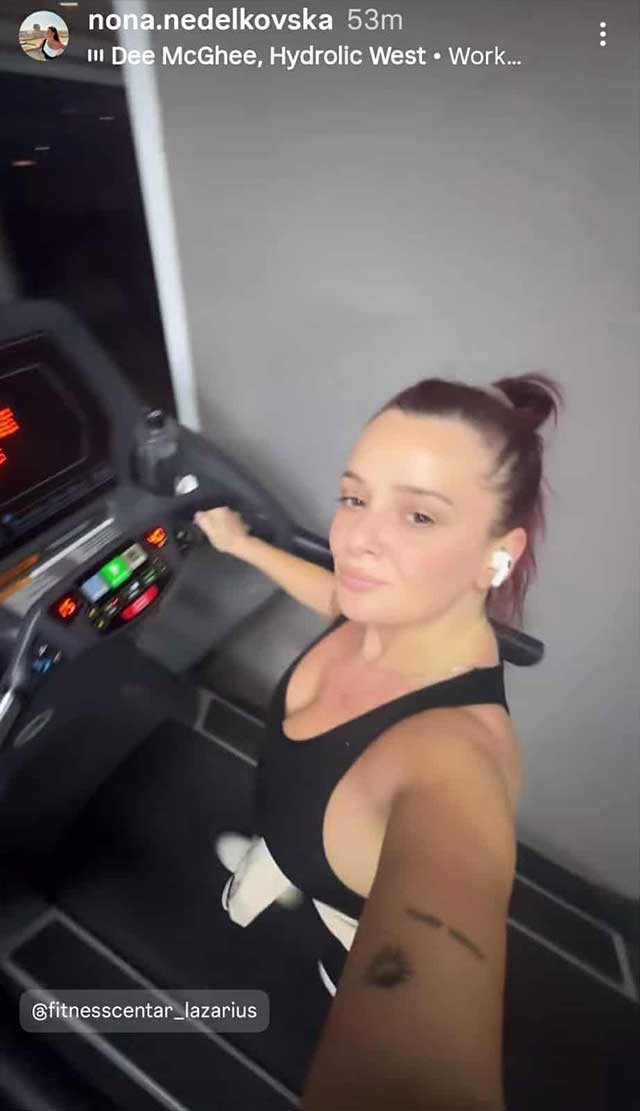 Имено Ноне се снимаше во теретана, на справа за трчање, а во фокусот беше и нејзиното раскошно деколте.