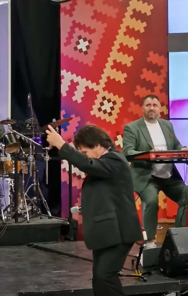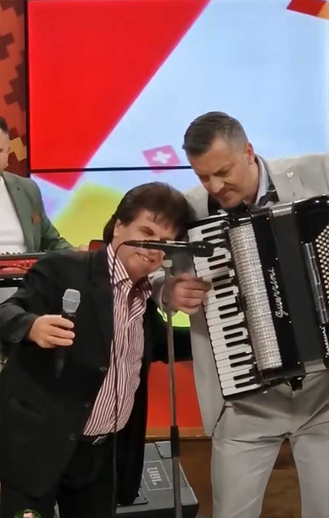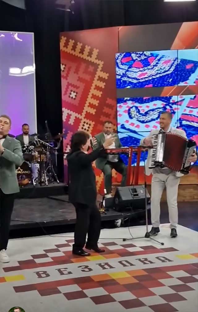 На снимката Спасен свири хармоника, а пејач е Орце Стевковски Царот, сопругот на водителката Дракче.