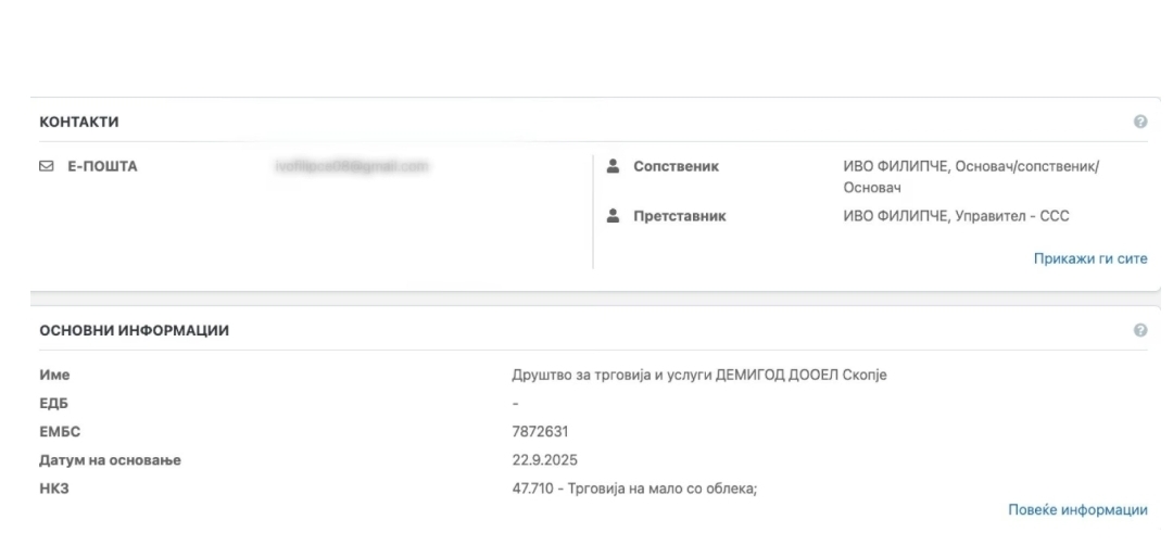 И синот на Венко Филипче, Иво, влезе во бизнис водите, отвори фирма за трговија со облека