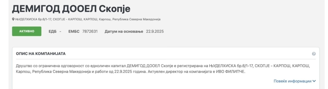 Синот на лидерот на СДСМ, Венко Филипче, ќе се испрoба во трговијата со конфекција, според јавно достапните информации, кои покажуваат дека тинејџерот од пред точно еден месец е основач на „Демигод“, друштво за продажба на облека на мало, објави порталот Фактор.мк.