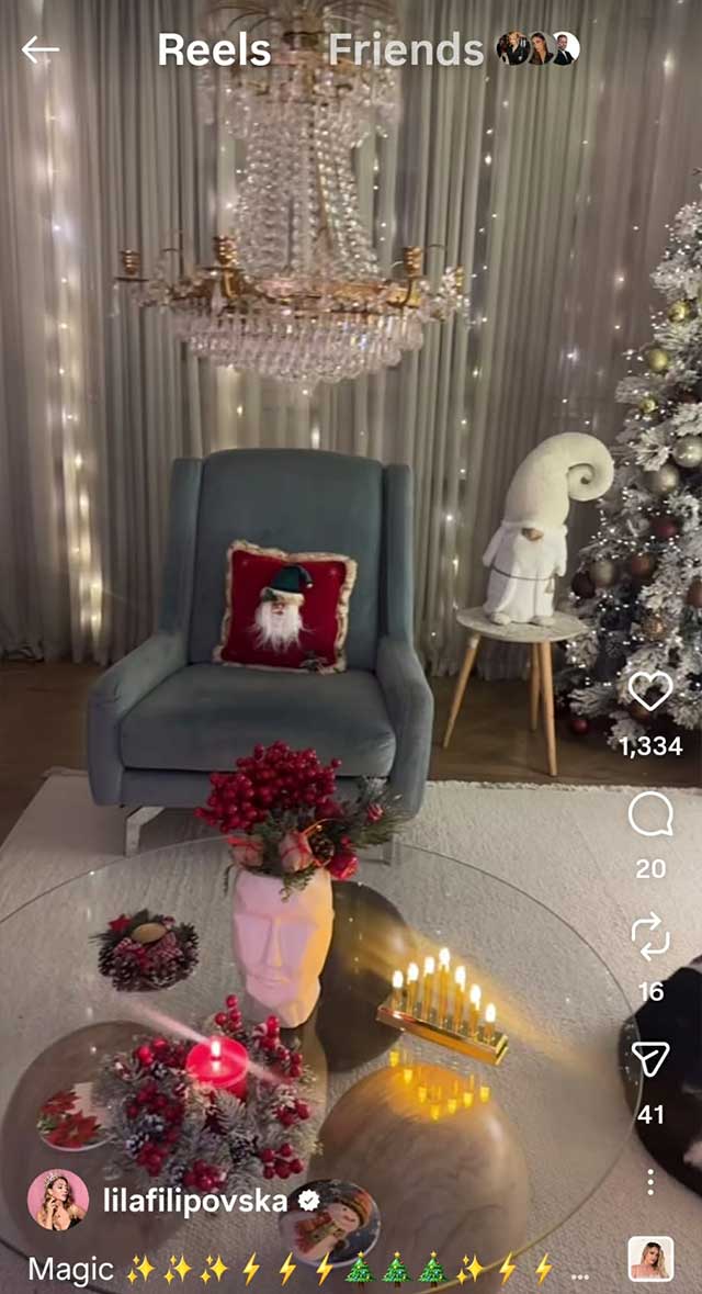 Па така тука се и бројните украси, светулки и Дедомразовци, кои водителката ги сними и снимката ја сподели на Инстаграм.