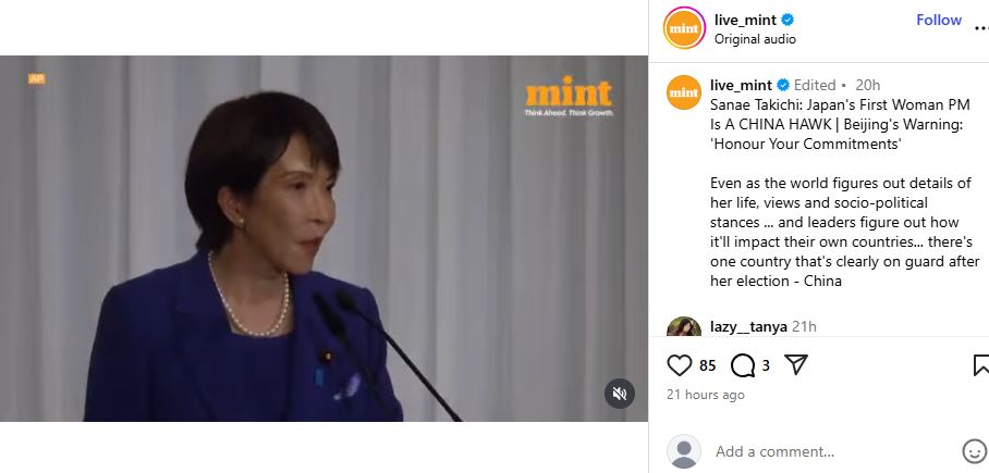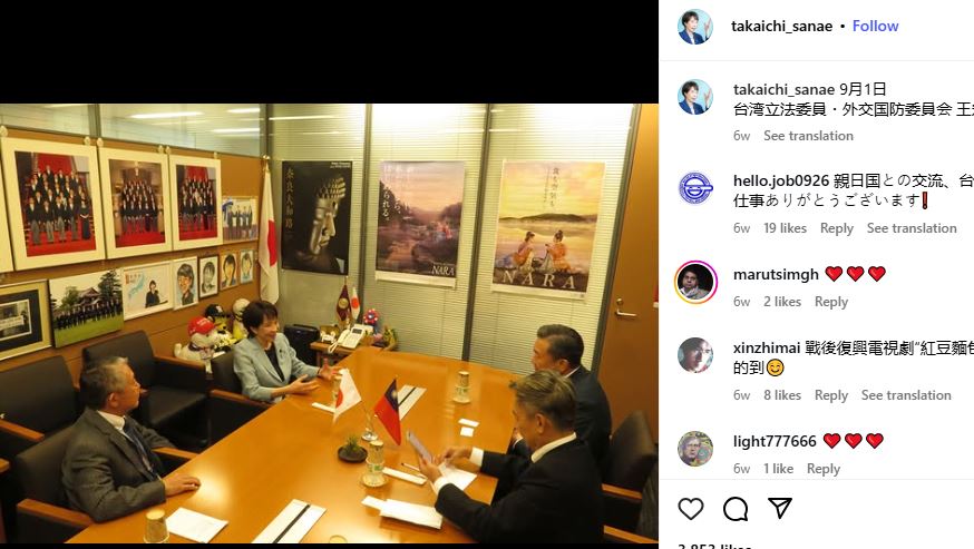 Сепак, нејзината меѓународна агенда е тесно поврзана со американската стратегија за ограничување на влијанието на Кина: под нејзино раководство, Јапонија отворено цели да ја надмине границата од 2% од бруто-домашниот производ за воени трошоци, да ги ревидира стратешките документи за одбрана и да го засили одбранбениот капацитет во регионален контекст што внимателно гледа кон Тајван, каде што неодамна и самата беше во посета, како можен фокус на нова криза.