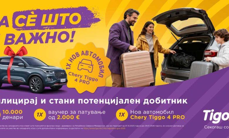 Tigo.mk ја започна својата најголема наградна игра досега: Нов Chery TIGGO 4 PRO, патување од соништата и парични награди