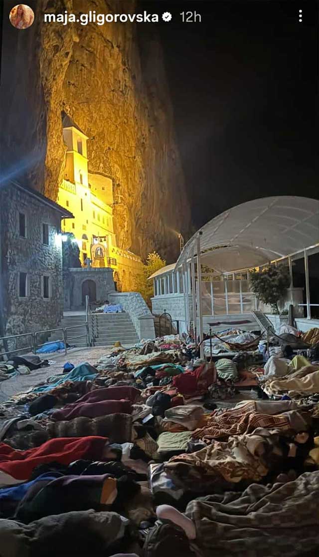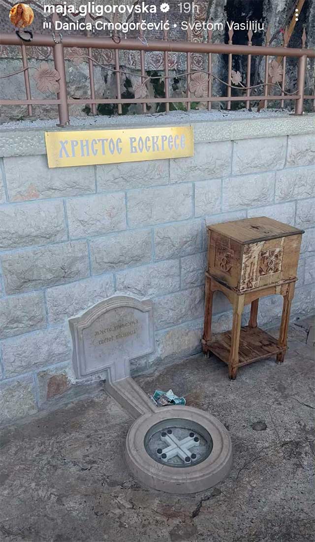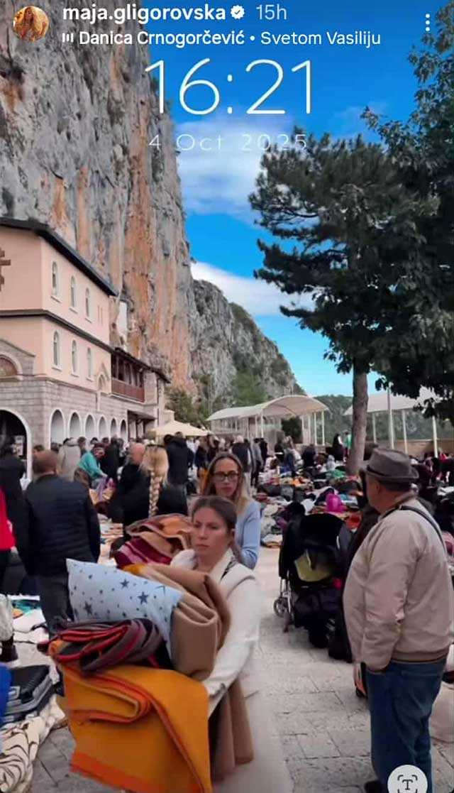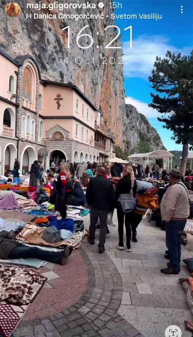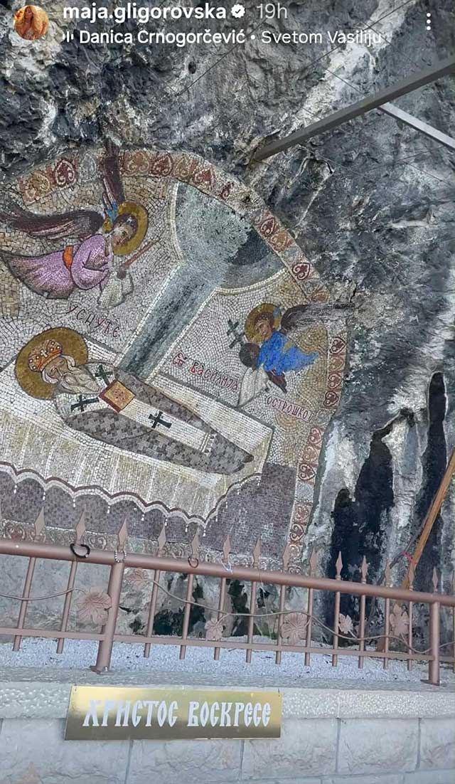 Таа беше да му се поклони на гробот на Свети Василија Острошки, а на својот Инстаграм објави и една снимка со која покажа што се случува пред манастирот во вечерните часови.
