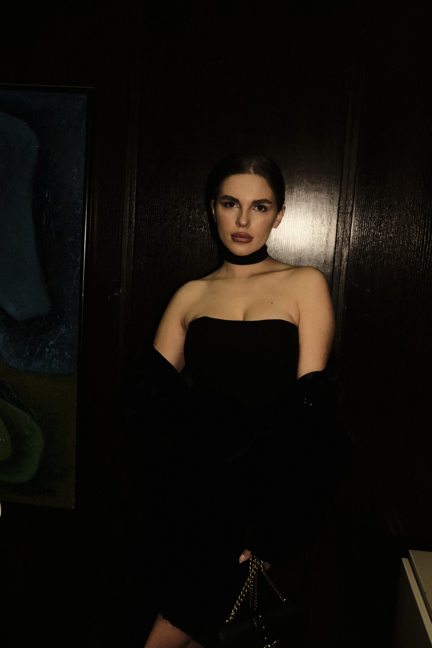 Младата 19-годишна Луна Бејков, пејачка, глумица и модел, привлече погледи со црна модна комбинација од брендот „Кокев“, надополнета со трендовски црни чизми.