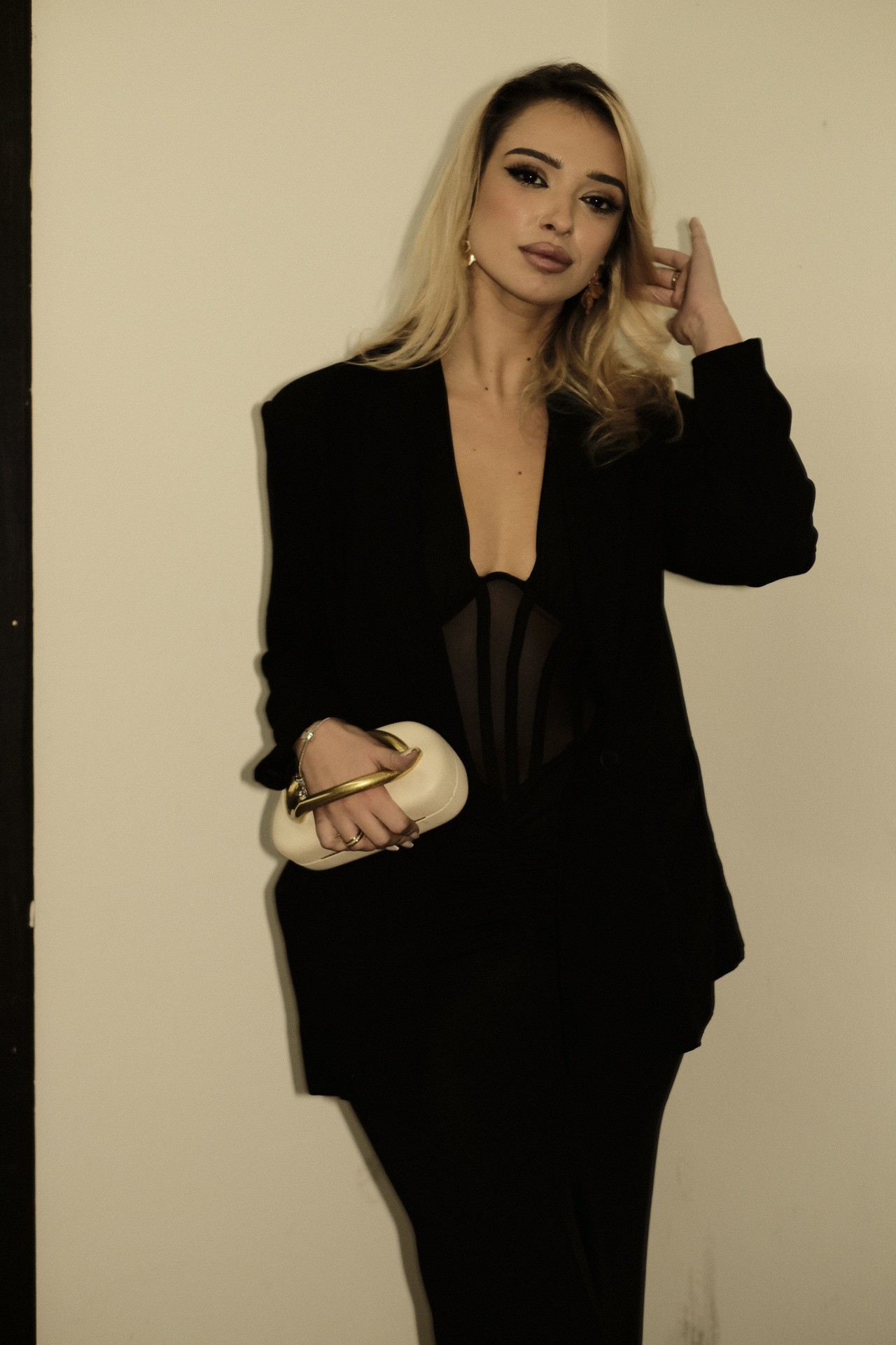 Марија Атанасова блесна во бекстејџот облечена во впечатлива црна комбинација од модно студио „Бела“ од Штип, кое е ,инаку, познато по дизјани на венчаници.