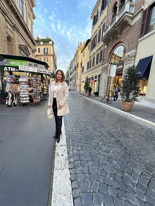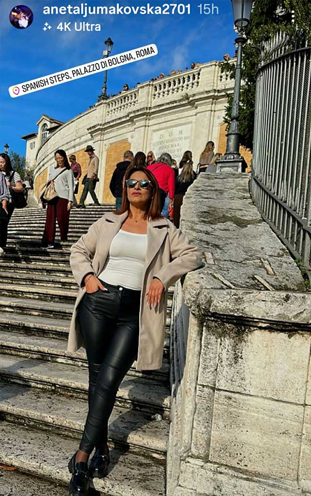 Таа потоа сподели и една снимка која што ја направи на популарните Шпански скали во Рим, покажувајќи како ужива во слободното време.