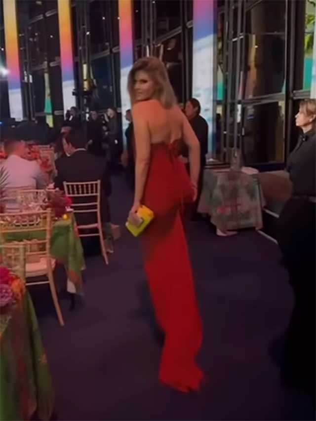 Мелина тогаш позираше во црвен фустан со потписот на својот дизајнерски бренд и сите ги воодушеви со својот изглед.