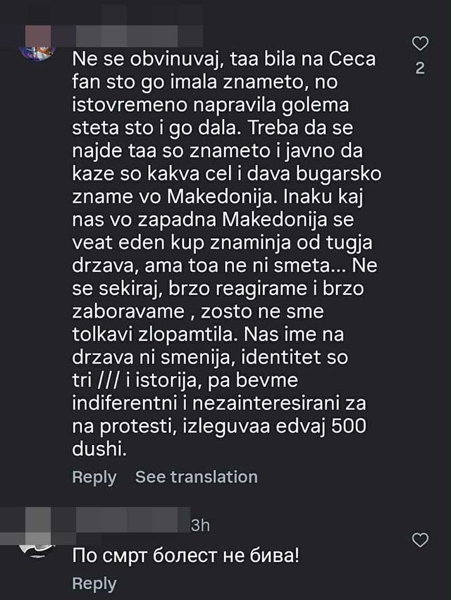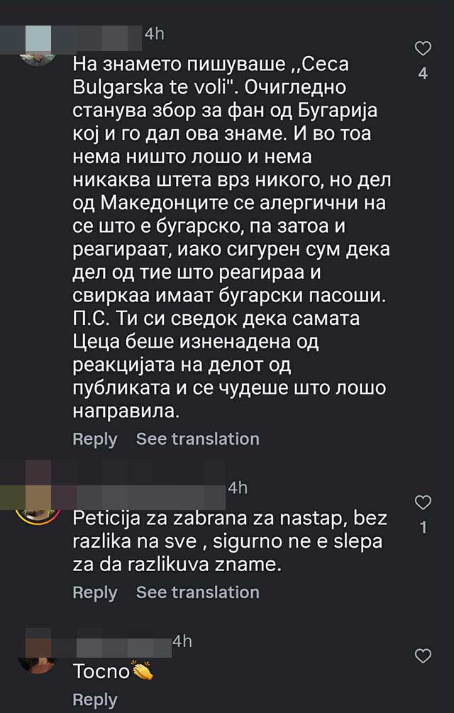 По концертот се огласи и Цеца, која истакна дека знамето го добила од фанови од публиката и дека сакала само да ги испочитува, без намера никого да навреди, а најмалку публиката во Македонија.