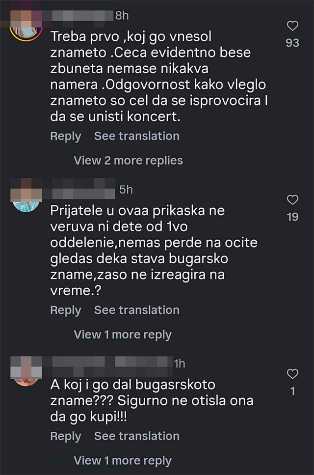 Имено, Цеца во еден момент доби бугарско знаме од публиката кое го бакна, a потоа и го префрли преку рамениците.