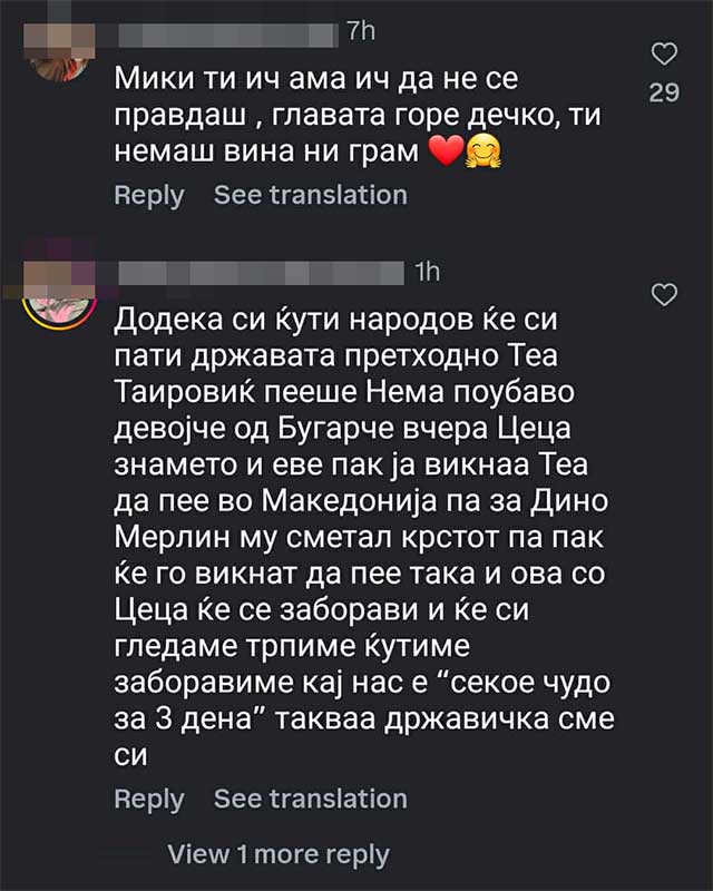 Мики во ова свое обраќање и се извини на публиката, но и потенцираше дека Цеца не знаела за проблемот што Македонија го има со Бугарија, бидејќи во спротивно, најверојатно поинаку ќе реагирала.