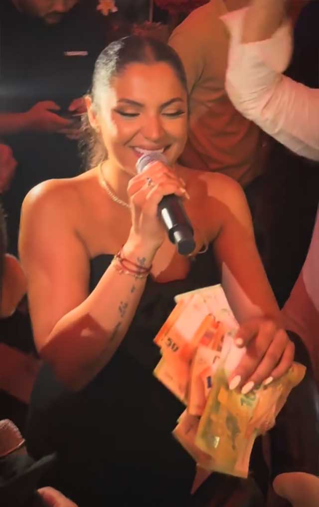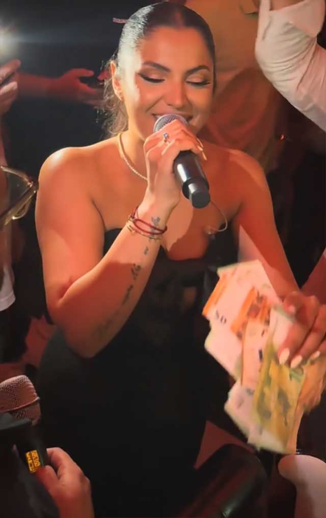 Па така со едната рака го држи микрофонот и полна со емоции ја пее песната, додека гостите цело време и даваат бакшиш.