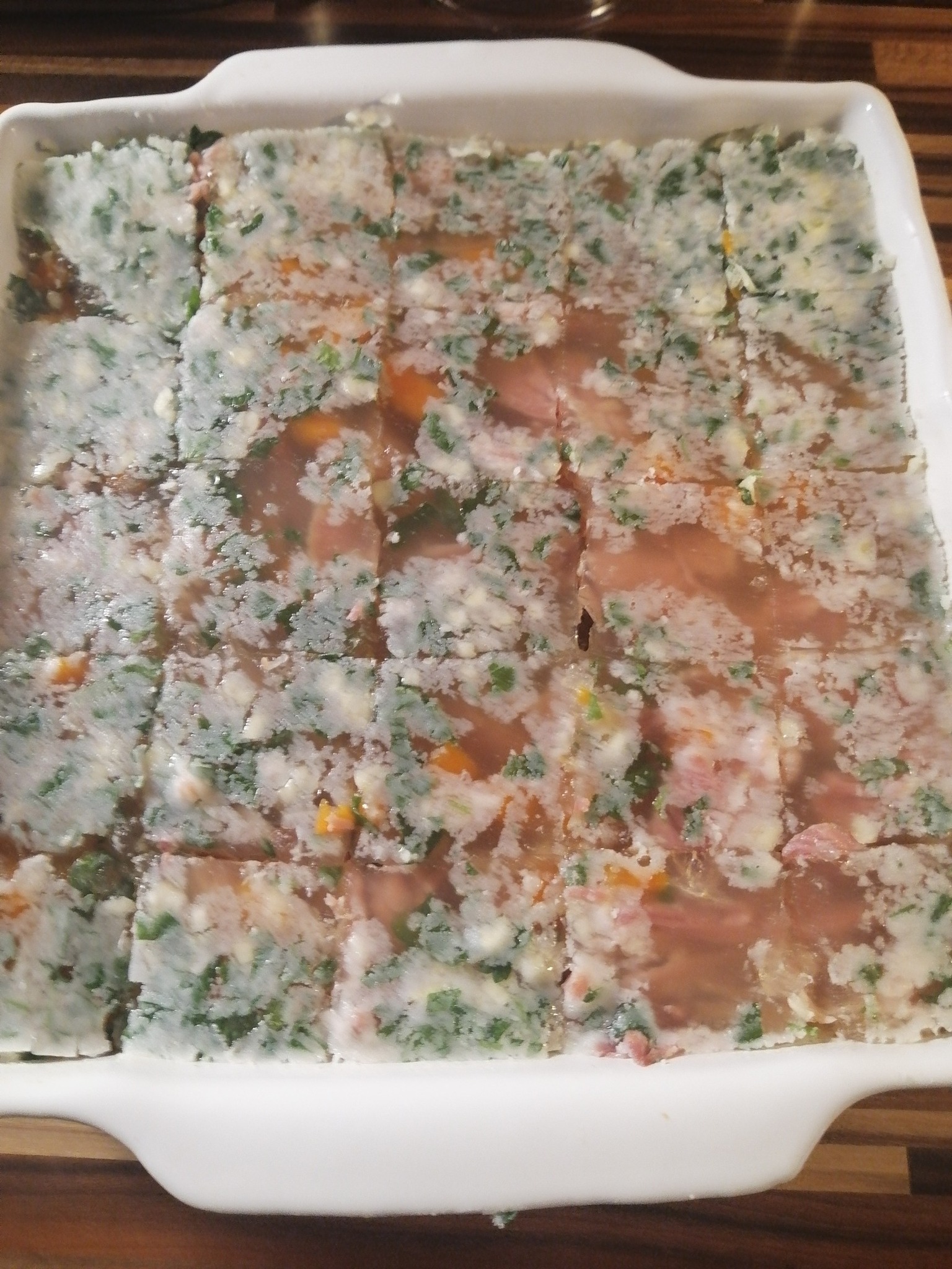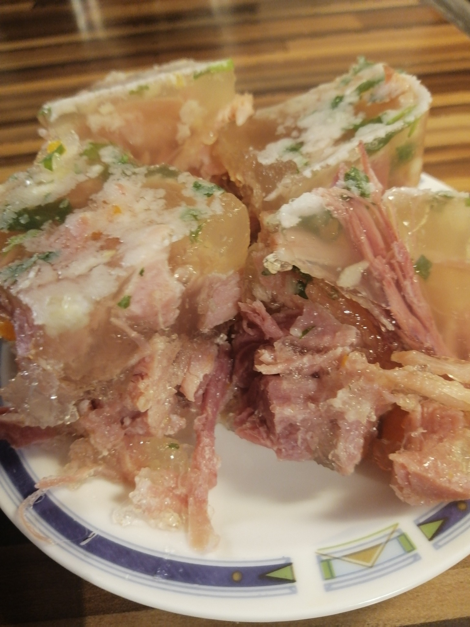 Кој сака, вели Зорка, може да додаде и малку желатин, таа понекогаш го прави тоа, но најчесто прирoдната желатинозна моќ од колениците е сосема доволна.