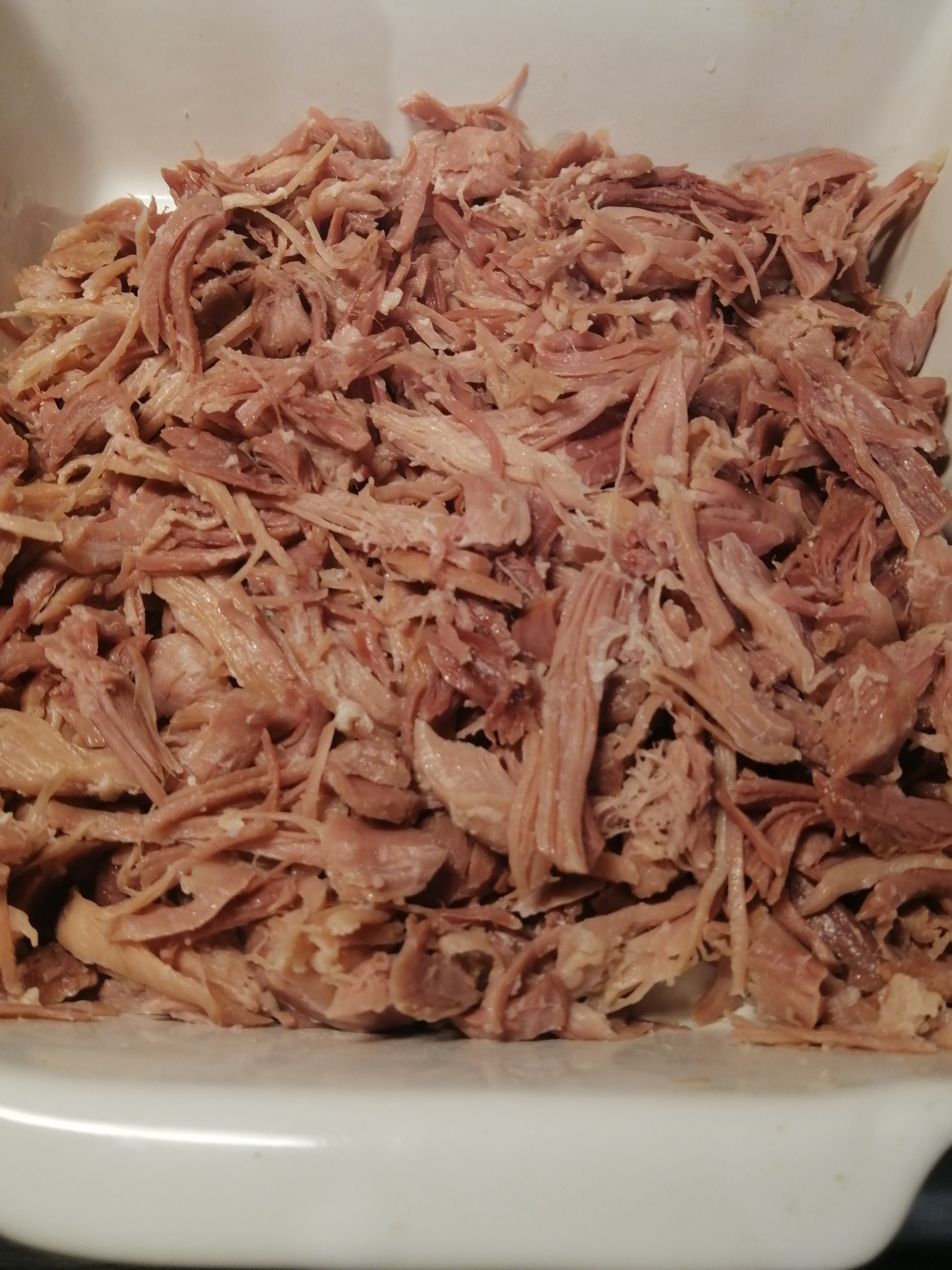 Колениците се варат заедно со морковот и кромидот додека месото не почне да се распаѓа. Откако ќе се сварат, Зорка го дроби месото на ситни парчиња, заедно со меките парчиња варен морков.
