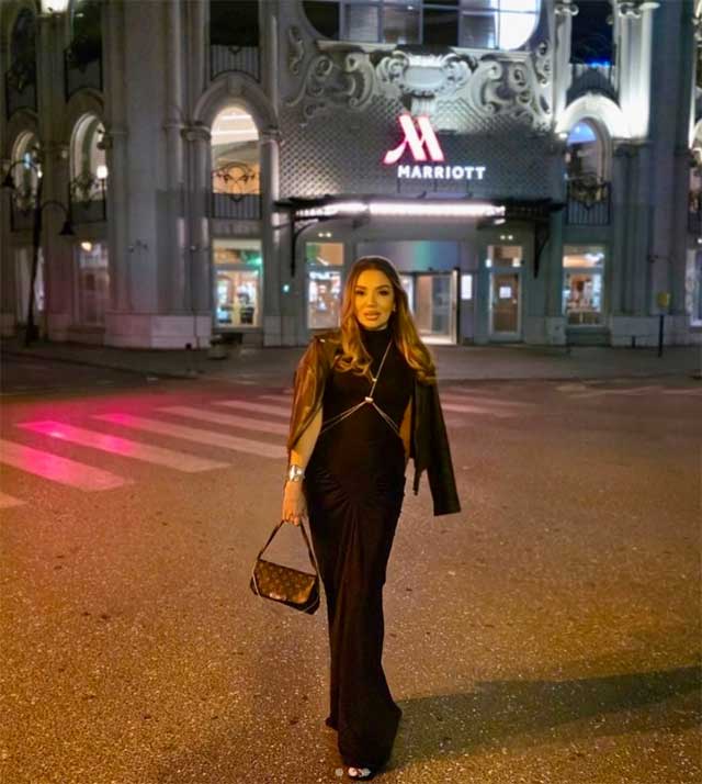Таа овој пат носеше црн фустан со кој, во комбинација со сите останати детали, изгледаше како излезен од модно списание.