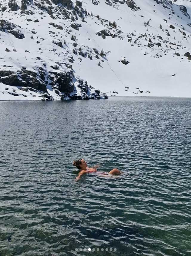 „Прв снег, прва радост“, напиша Бетика која во костим за капење се избања во студеното езеро на Јабланица.