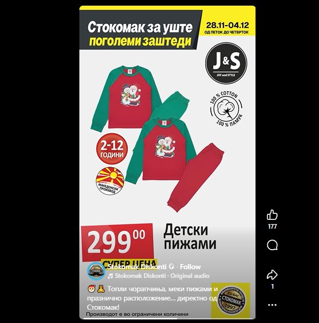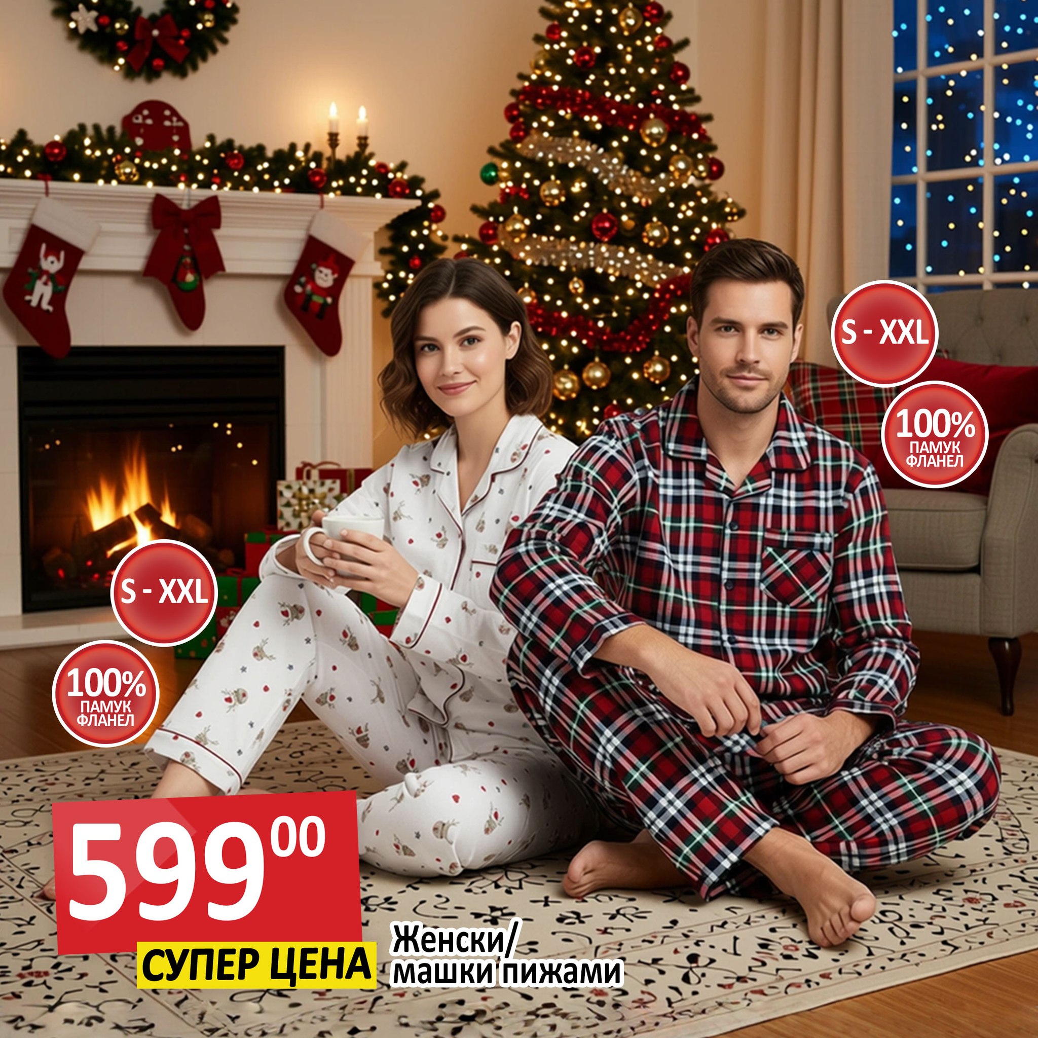 Потоа, вистински празничен хит – новогодишните пижами по цена од 599 денари, совршени за целото семејство што сака да влезе во декемвриската магија.