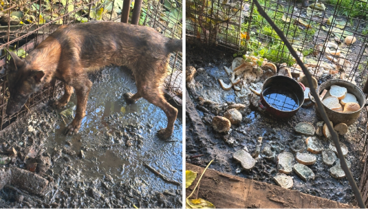(Видео) Куче најдено во кафез полн со стар леб и со измет, го чувале така две години