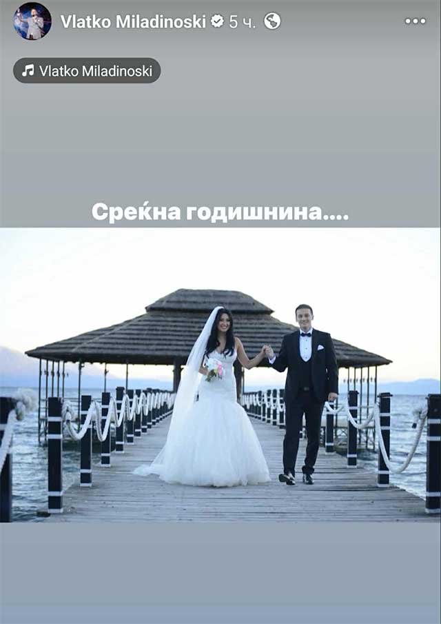 Имено, на Влатко и неговата убава сопруга Кристина прославија годишнина од бракот, па пејачот сподели една фотографија од нивната свадба со која ги воодушеви неговите бројни обожаватели.