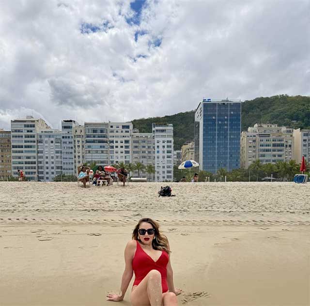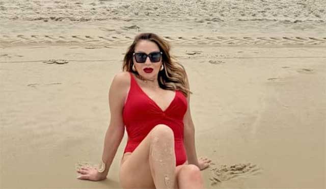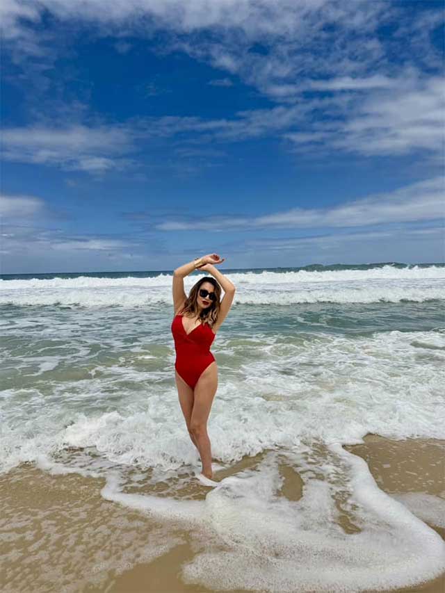 Водителката овој пат покажа како ужива во црвен едноделен костим за капење, но и дека изгледа подобро од кога било досега.