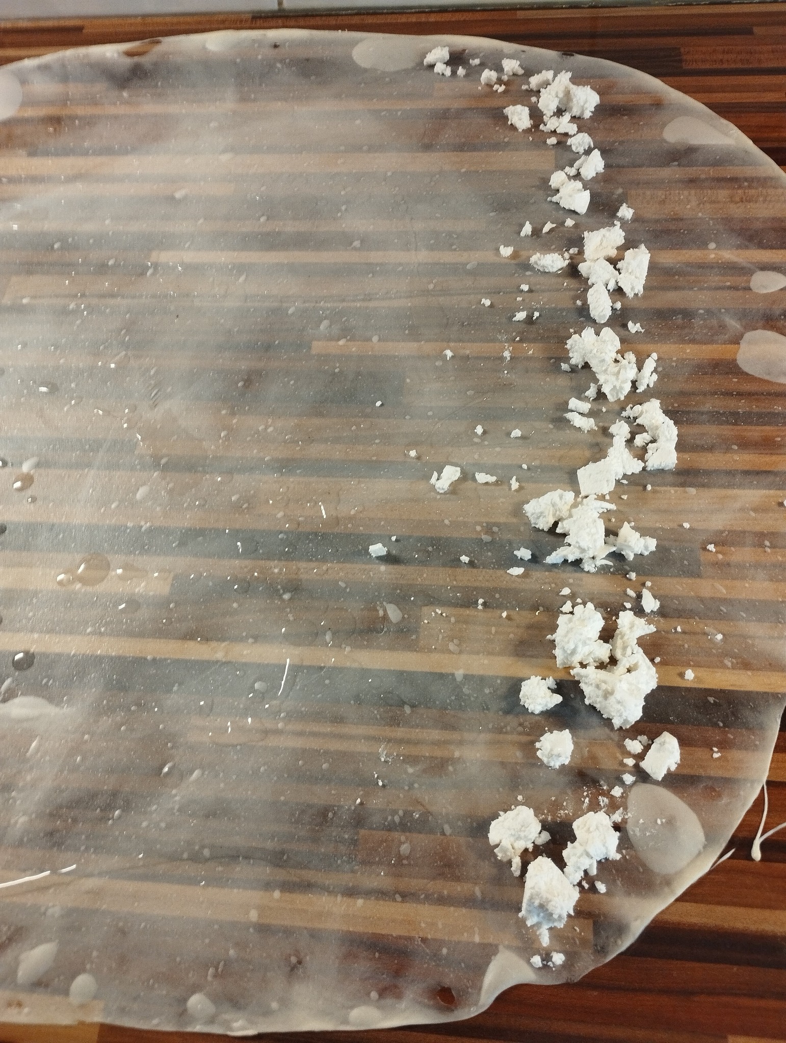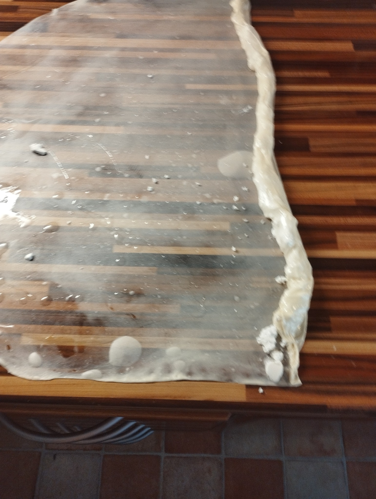 Во тестото се додава една лажичка сол, околу 50 мл масло и млака вода, доволно за да се добие средно меко тесто. Се остава во фрижидер преку цела ноќ. Наутро, тестото се дели на мали топчиња, кои се расукуваат со раце на намачкана површина и се оставаат да одморат околу 20 минути.